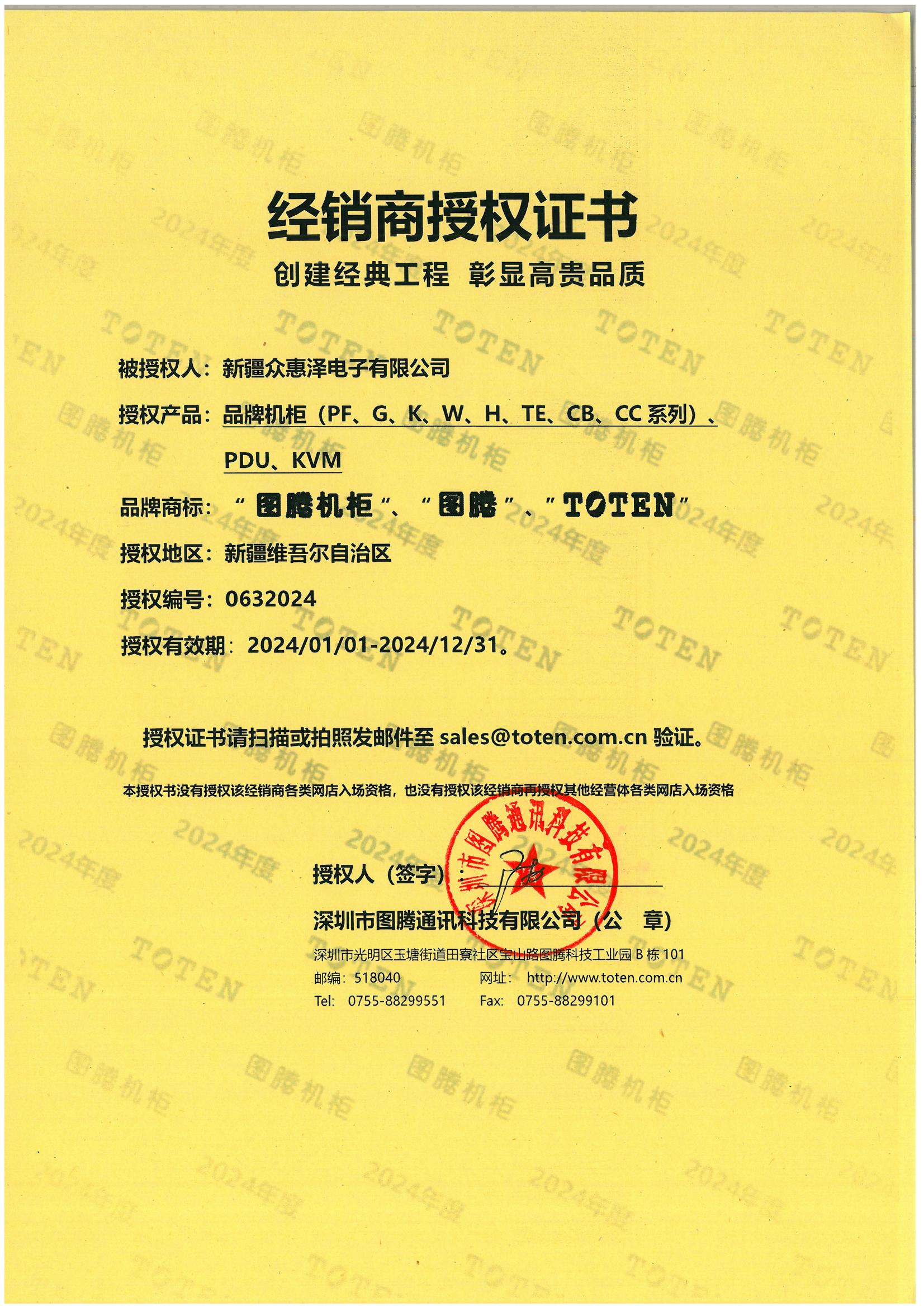 新疆眾惠澤電子有限公司是一家銷售圖騰機柜、PDU、綜合布線產品、長飛光纜,ATEN全系列以及光纖傳輸產品的專業化網絡設備提供商,是深圳市圖騰通訊科技有限公司正規授權的特約經銷商。公司成立至今已經為眾多系統集成商、弱電工程商提供優良的產品和完善的售后服務,客戶群體包括:政府部門、銀行證券系統、IDC中心機房、部隊、學校、房地產開發公司、大型上市公司、大型電力機構、運營商等。